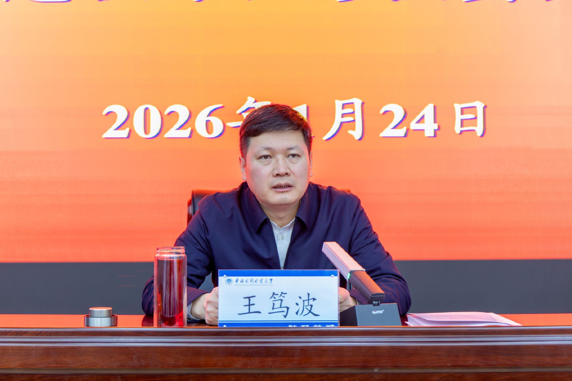 1月24日上午,华北水利水电大学在综合实验楼一楼多功能报告厅召开2025年度党组织书记抓基层党建述职评议考核会议。校党委书记王笃波出席会议并讲话,校纪委书记、监察专员卢新初出席会议。会议由校党委副书记焦爱萍主持。