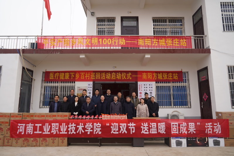 1月28日,河南工业职业技术学院党委副书记、校长屈保中带队到学校定点帮扶村方城县杨集镇河坡村、张庄村,开展校地结对帮扶工作调研暨“迎双节 送温暖 固成果”活动。学校党委副书记马小兵、副校长冯书丽,方城县政府副县长樊海鹏参加活动。县委组织部、县农业农村局、杨集镇政府和学校党委组织部、党委宣传部相关同志陪同。