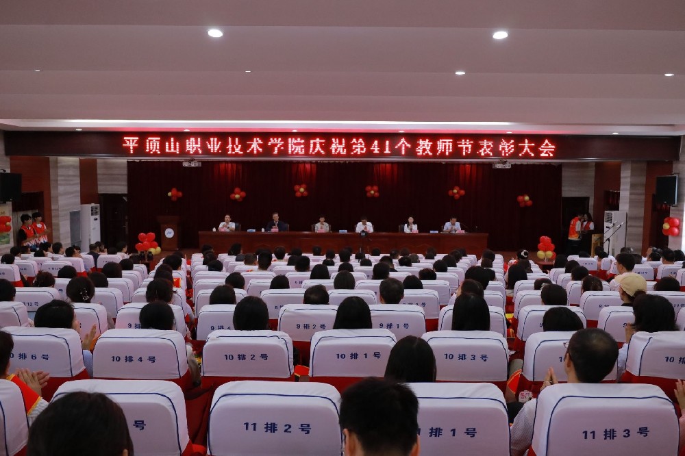 9月9日下午,平顶山职业技术学院召开庆祝第41个教师节表彰大会。校领导李蔚云、何宗要、李建辉、石钰、贾琦、王彦超出席大会。各二级学院、处(室、中心)负责人以及受表彰人员参加大会。校长何宗要主持会议。