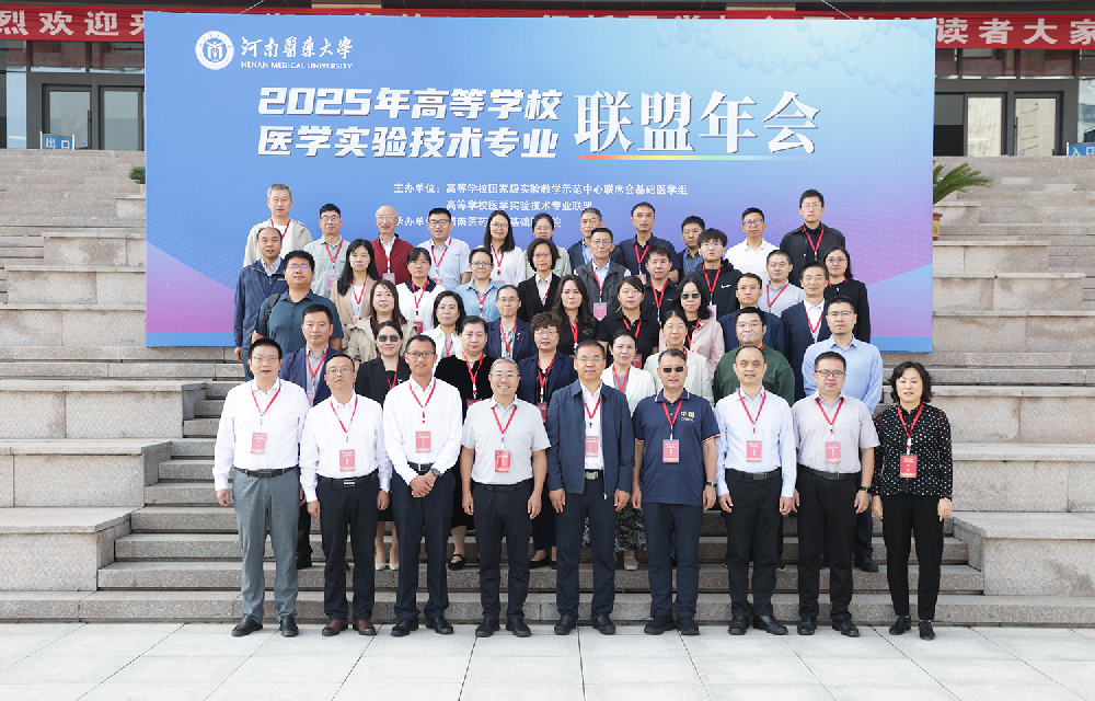 为深入推进医学实验技术专业教育改革与学科建设,9月19日至21日,由高等学校国家级教学示范中心联席会基础医学组、高等学校医学实验技术专业联盟、河南医药大学基础医学院联合主办的“2025年高等学校医学实验技术专业联盟年会”在河南医药大学顺利召开。来自全国多所高校的50余位专家学者齐聚该校,共商医学实验技术专业发展大计。校党委委员、副校长林俊堂教授,联盟理事长、重庆医科大学副校长余华荣教授,南方医科大学董为人教授等出席开幕式。