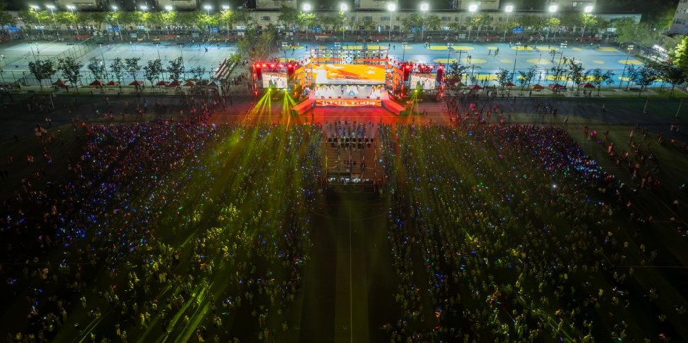 金秋送爽,星光璀璨。9月25日晚,河南职业技术学院“青春‘河’你共奔赴,‘职’面山海新征程”2025年迎新生庆国庆汇演在田径运动场隆重举行。校领导夏新颜、田华、肖珑、李玉峰、盛兴文、鲁冬、朱永宽出席活动。学校各单位相关负责人、全体新生辅导员及7300余名2025级新生共同观看演出。