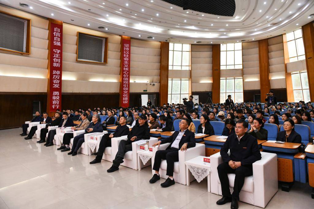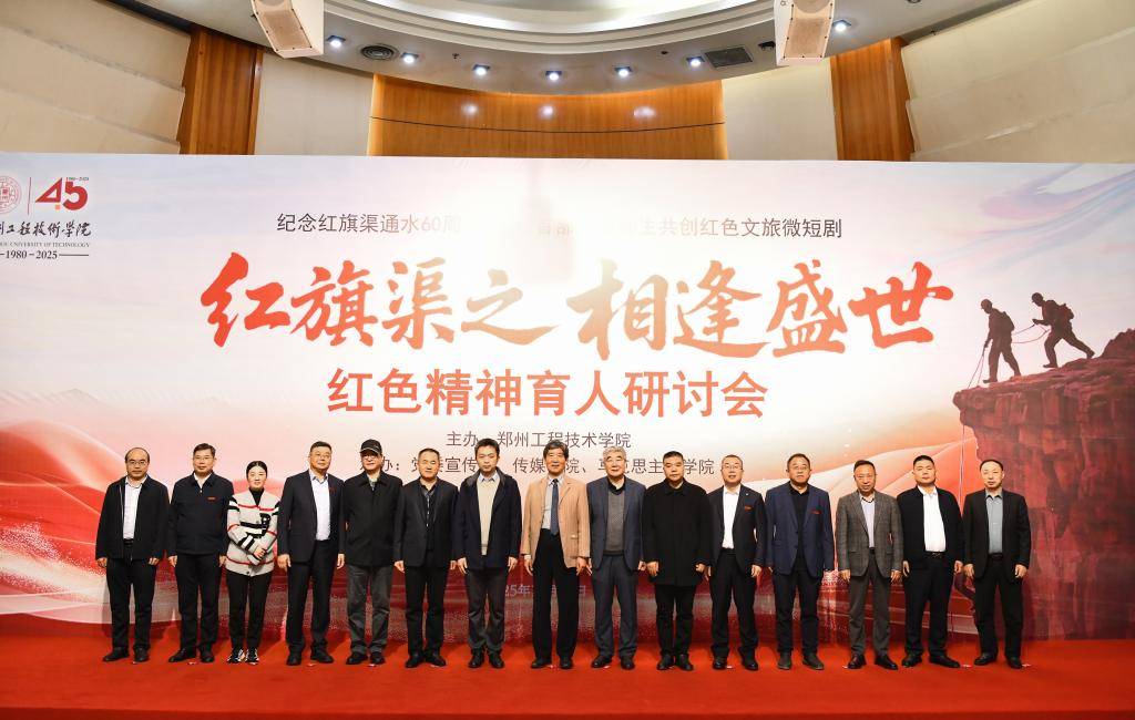10月15日上午,《红旗渠之相逢盛世》红色精神育人研讨会在郑州工程技术学院英才校区黄河会堂隆重举办。原中共中央党史研究室宣传教育局副局长薛庆超,华北水利水电大学原党委书记、黄河文化研究会会长朱海风,河南日报社党委委员、副总编辑李铮,郑州市文化广电和旅游局党组成员、一级调研员王道远;河南大学新闻与传播学院副院长高红波,国家一级导演、一级摄影师刘澍,郑州市文化广电和旅游局网络视听处处长许华波,郑州工程技术学院校长白仲虎,党委副书记、工会主席焦红波,副校长张建伟、谭笑风,传媒学院领导班子,马克思主义学院领导班子,思政课教师,学生工作教师,共青团干部及师生代表300余人现场参会。