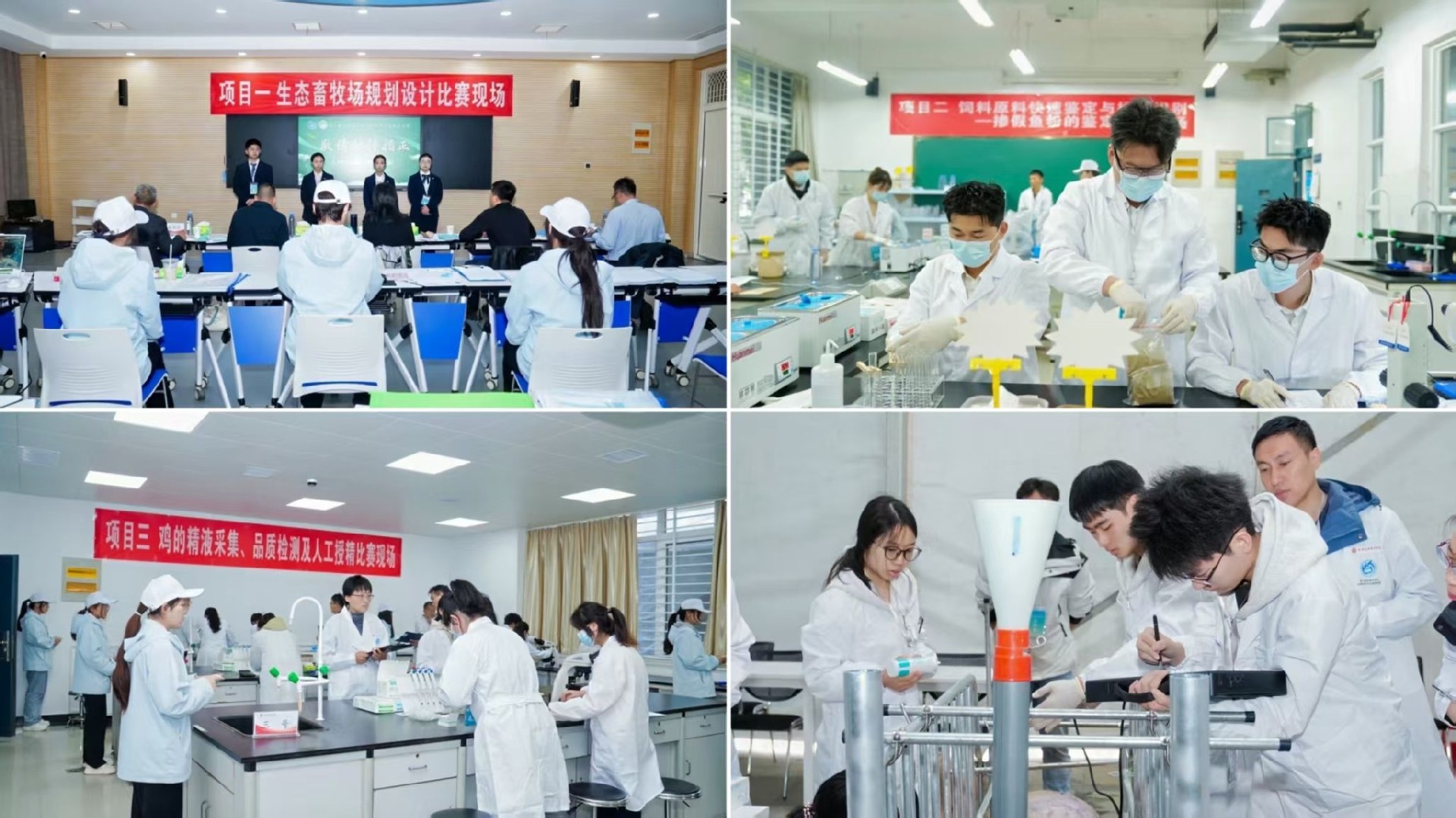 本次大赛历时两天,设有生态畜牧场规划设计,饲料原料快速鉴定与掺假识别,鸡的精液采集、品质检测及人工授精,猪的体型外貌评分、活体背膘厚与眼肌面积测定四个比赛项目,吸引了来自全国各地73所高等院校的740余名师生同台竞技。经过激烈比拼,河南农业大学、锦州医科大学等11支团队荣获大赛团体特等奖。中国农业大学、华中农业大学等高校荣获大赛单项特等奖。河南牧业经济学院荣获特别贡献组织奖。河南牧业经济学院动物科技学院选派的参赛队伍经过前期充分备赛,在大赛的激烈角逐中脱颖而出,取得团体特等奖及4个单项特等奖的优异成绩。