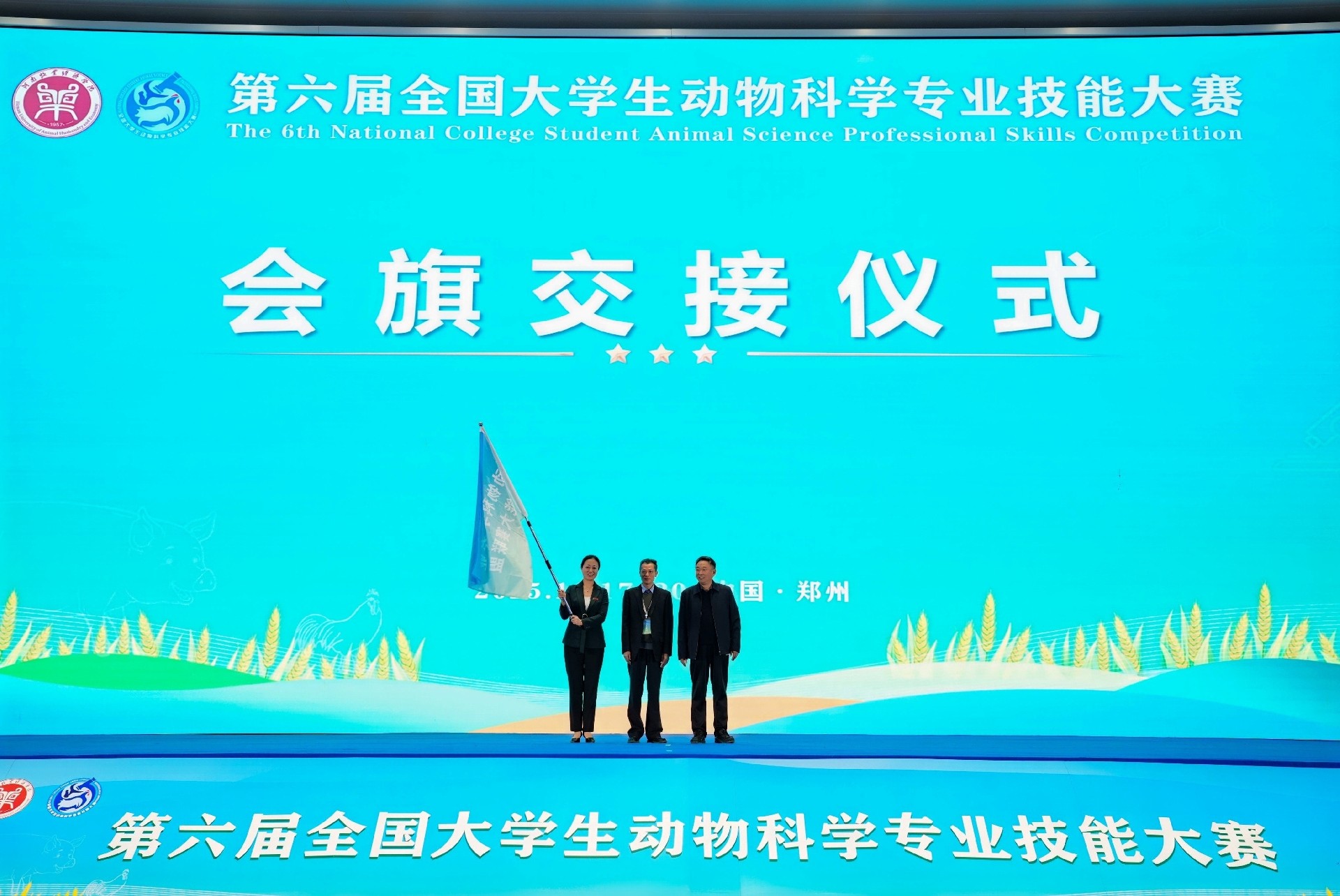 闭幕式上,边传周致辞。各项目裁判长分别点评和汇报项目比赛情况。与会领导嘉宾共同为获奖团体和个人颁奖。河南牧业经济学院与第七届全国大学生动物科学专业技能大赛承办单位——湖南农业大学举行了会旗交接仪式。