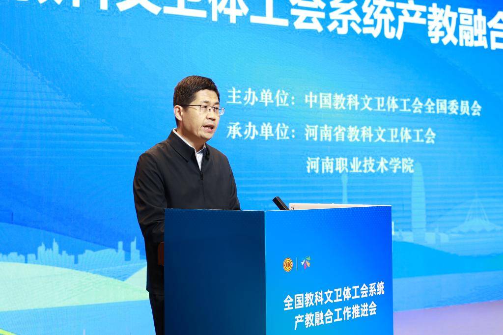 本次会议由中国教科文卫体工会全国委员会主办,河南省教科文卫体工会、河南职业技术学院承办,旨在深入学习贯彻党的二十届四中全会精神,全面落实《中共中央 国务院关于深化产业工人队伍建设改革的意见》和全总“559”工作部署,总结交流各地推进产教融合典型经验,进一步推动教育、科技、人才一体化发展,助力产业工人队伍建设改革走深走实。来自全国各省教科文卫体工会、央企集团工会、工匠学院建设点及我省部分高校工会的负责同志和师生代表参会。
