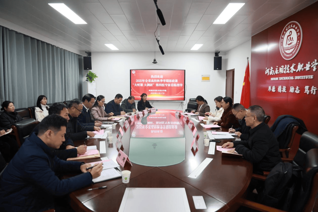 11月17日,河南省教育厅思政课“大听课、大调研”第四专家组一行5人,在组长安阳工学院纪委书记王红艳带领下莅临河南应用技术职业学院,开展听课调研与指导工作。河南应用技术职业学院党委书记闫俊山,党委副书记、工会主席陈君丽,副校长黄振中及相关职能部门、马克思主义学院主要负责人陪同调研。