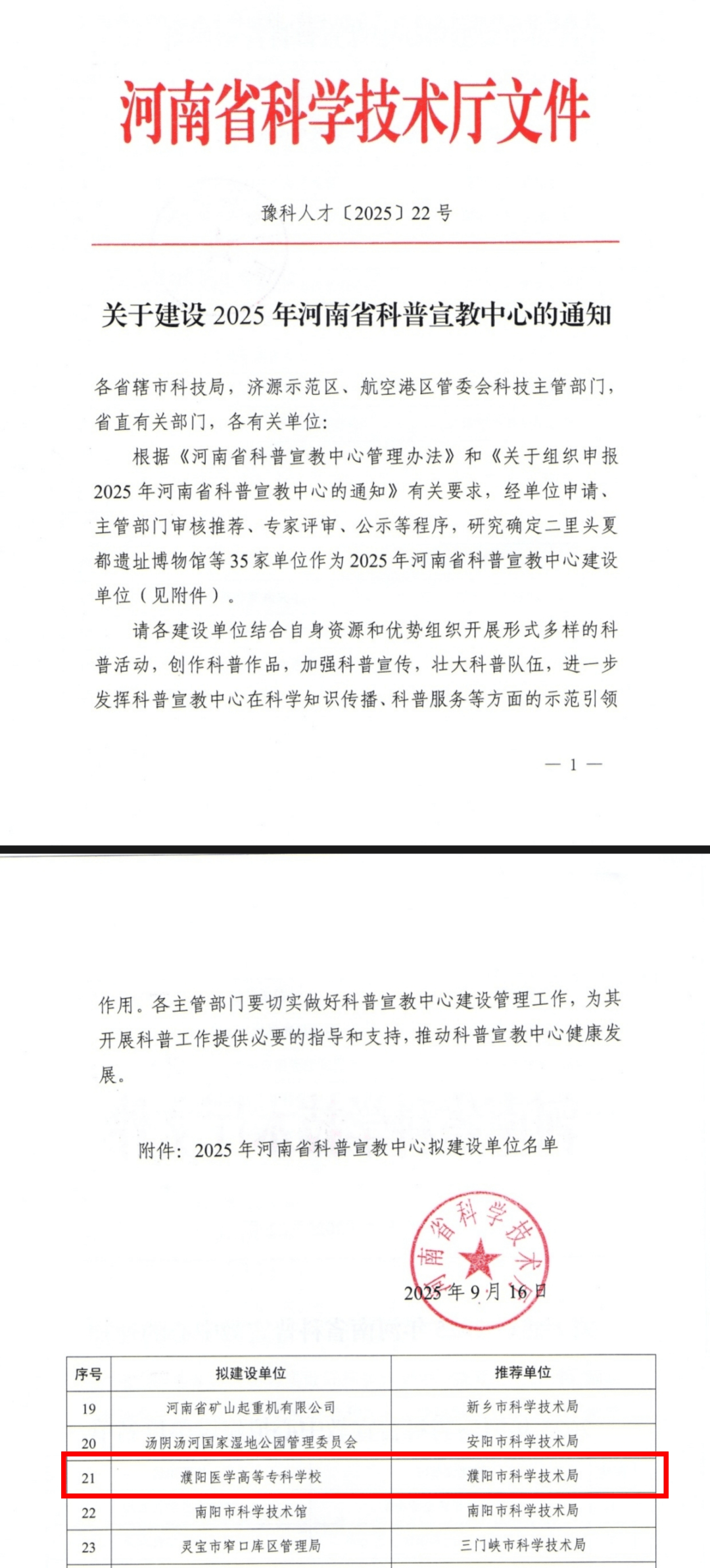 学校成功获批“河南省科普宣教中心”