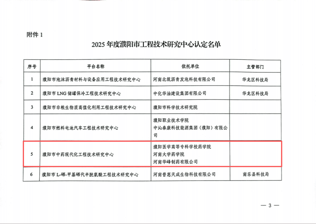学校成功获批“濮阳市中药现代化工程技术研究中心”