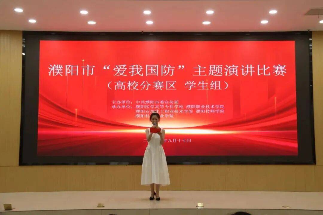 举办濮阳市“爱我国防”主题演讲比赛(高校分赛区),来自全市5所院校的11名教师选手和16名学生选手参加决赛。