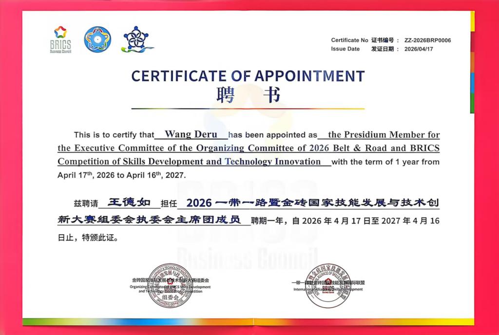 开封大学校长王德如当选“一带一路”暨金砖国家技能创新大赛主席团成员