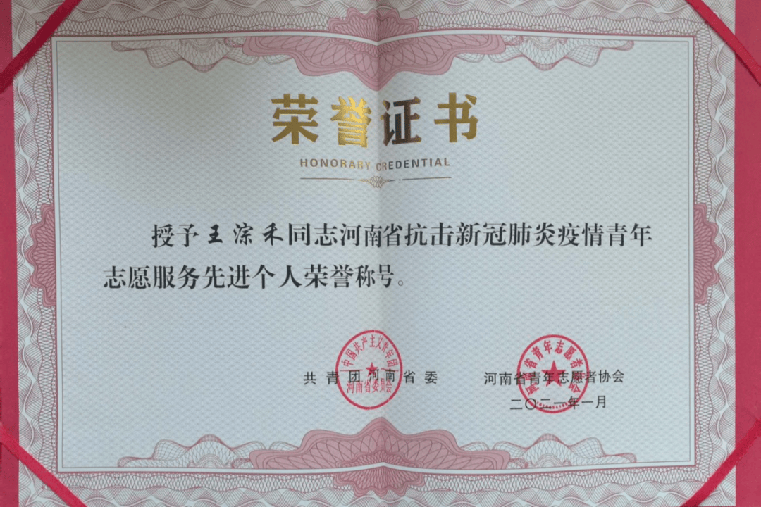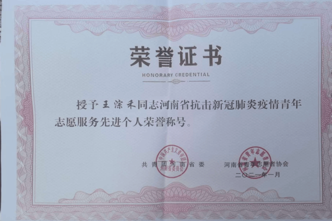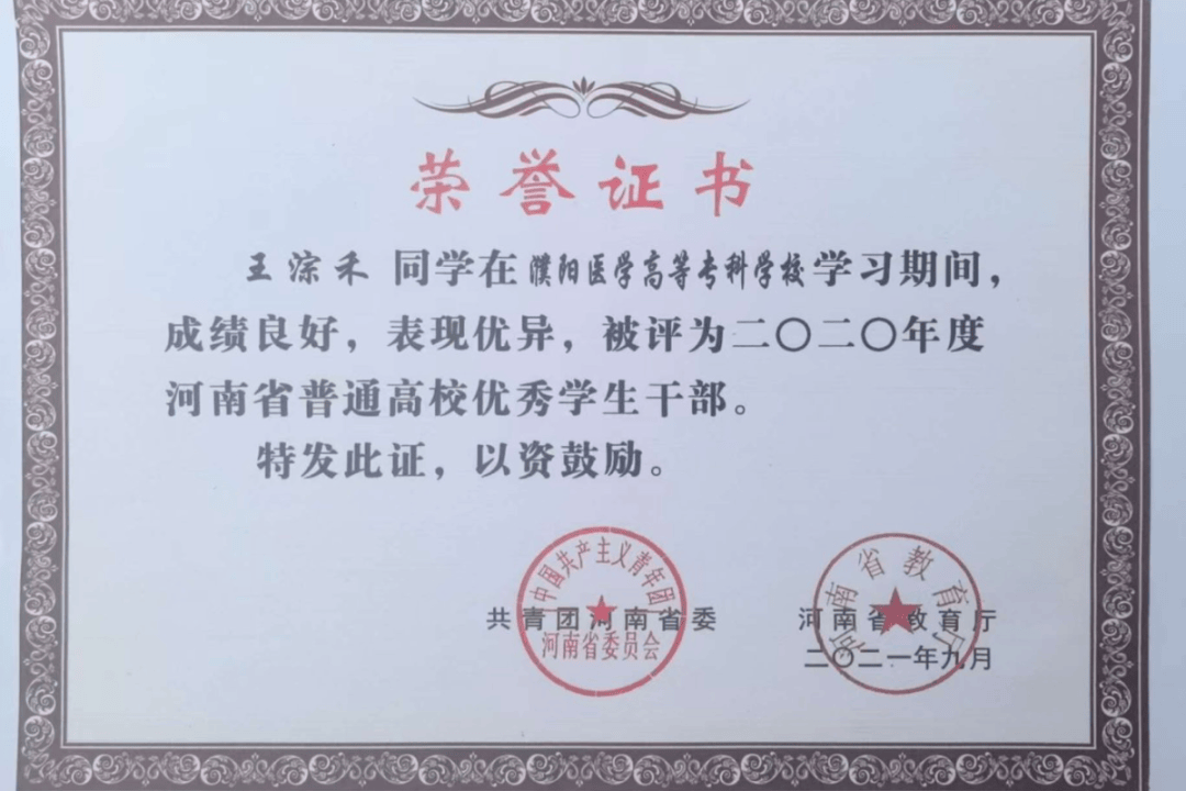 从濮阳医专学子到救援尖兵,王淙禾用行动书写了新时代青年的担当。先后获全国红十字志愿服务先进典型、中国大学生自强之星国家级荣誉2项;河南省抗击新冠肺炎疫情青年志愿服务先进个人等省级荣誉3项、市级荣誉6项。这些荣誉不仅是对他个人的肯定,更彰显了新时代高校毕业生服务社会的青春担当。