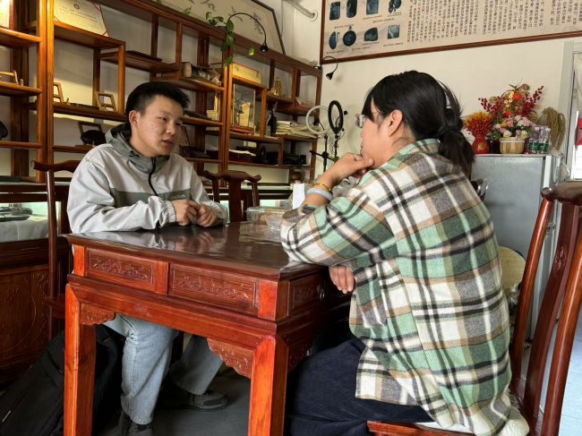 在银川闫家砚坊,贺兰砚制作技艺银川市级非遗传承人、闫家砚第五代传承人徐楠对团队一行表示热烈欢迎。交流中,徐楠结合闫家砚坊百年传承历程,详细讲解了贺兰砚的历史渊源、石料特性,以及独具特色的“俏色巧雕”创作理念,现场演示了从选料、设计、雕刻到打磨抛光的全流程技艺,每一个环节都尽显匠人精益求精的坚守。团队成员驻足观摩经典砚作,认真聆听非遗传承故事,在一凿一刻的细节中,深刻体会贺兰砚技艺承载的文化底蕴与艺术价值,直观感受非遗匠人的匠心与坚守。