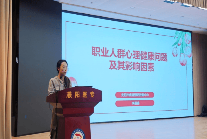 本次活动通过发放职业健康宣传手册、举办互动式的知识讲座等形式,进行职业病防治相关知识的宣传。安阳疾控中心李晶鑫老师结合多年职业健康工作经验,通过典型案例剖析职业人群心理健康现状,深入解读压力来源、心理干预策略和社会支持体系的重要性,为师生提供科学应对职业心理压力的思路。濮阳市职业病防治院副院长陈晓霞则立足职业病防治前沿,系统阐述职业病诊断标准、风险评估方法及防治体系构建路径,强调“预防为主、防治结合”的健康管理理念,为守护劳动者健康权益提供实践指导。