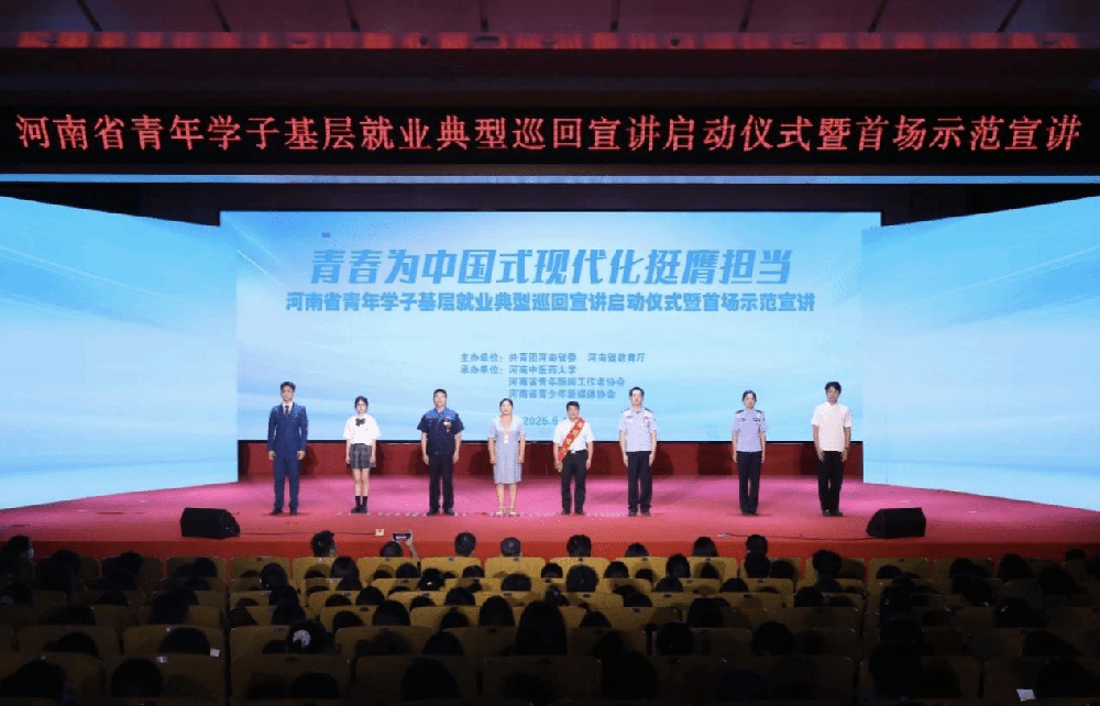 为深入学习贯彻习近平总书记关于青年工作的重要思想和关于河南工作的重要论述,聚焦“两高四着力”,引导广大青年学子积极投身基层实践,2025年6月12日,由团省委、省教育厅主办,河南中医药大学、河南省青年新闻工作者协会、河南省青少年新媒体工作协会承办的“青春为中国式现代化挺膺担当”——河南省青年学子基层就业典型巡回宣讲启动仪式暨首场示范宣讲在河南中医药大学举行。团省委二级巡视员韩冰出席活动并讲话,校党委副书记朱建光出席活动并致辞,省委宣传部、省教育厅、团省委相关负责同志出席活动。省内11所高校的500多名学生参加此次活动。