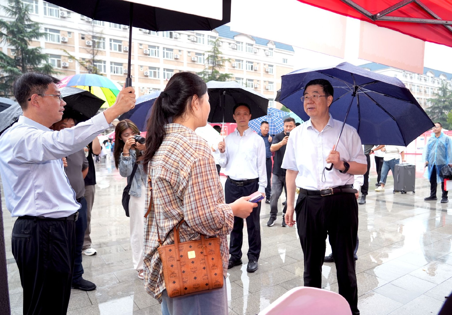 9月4日上午,校党委书记刘志军、校党委副书记黄泽峰、副校长牛进平分别在职能部门负责人陪同下冒雨检查两个校区的迎新工作。刘志军强调,要高质量做好迎新工作、入学教育、军事训练等工作,将学生管理、专业学习、生活保障等工作落到实处;要及时掌握报到新生的情况,对家庭困难的学生要畅通绿色通道,对延迟报到的学生要及时跟进,提供“一对一”专业指导;分管领导和学院负责人要深入一线,多联系学生,充分调研,让学生随时感受到学校的关怀和温暖;要按照学校有关要求,加强学生的安全教育,及时对新生的管理工作开展监督检查,确保迎新季各项工作平稳过渡。每到一处,刘志军都关切询问新生的报到情况,同家长亲切交流,与新生合影留念,勉励新同学要珍惜时光、敢于探索、勇于创新,胸怀赤子之心,砥砺报国之志,积极投身强国建设、民族复兴伟大征程,用奋斗和汗水在工大书写属于自己的青春篇章。