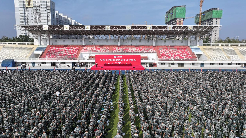 9月15日上午,安阳工学院2025级新生开学典礼在体育场举行。校领导沈记全、牛瑞庆、陈书章、王红艳、彭仁海、赵卫兵、闫春岭出席。学校相关职能部门负责人,各学院党政负责人、副书记、团委书记、新生辅导员及全体2025级新生参加。