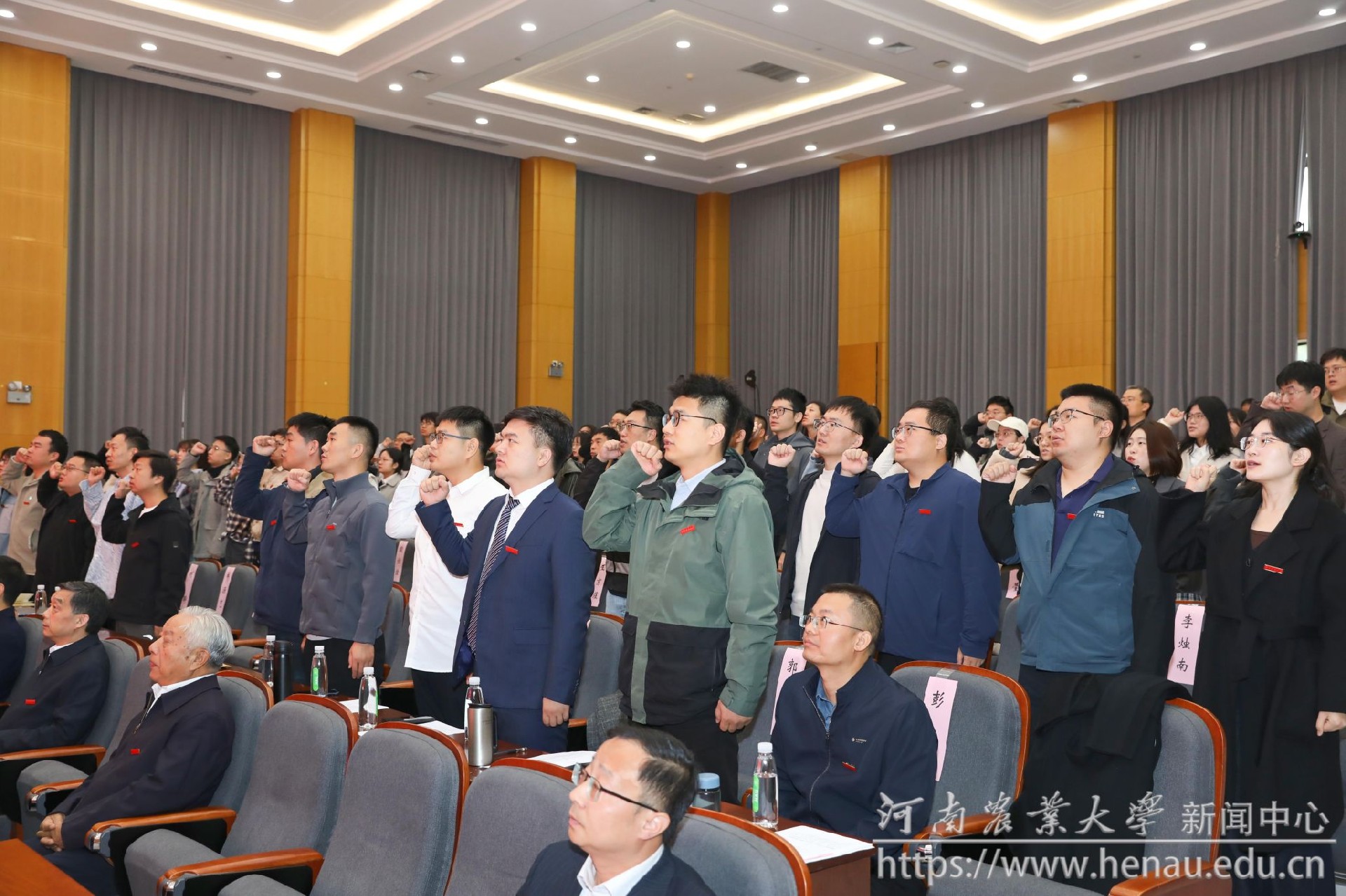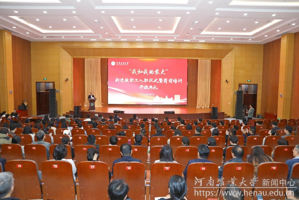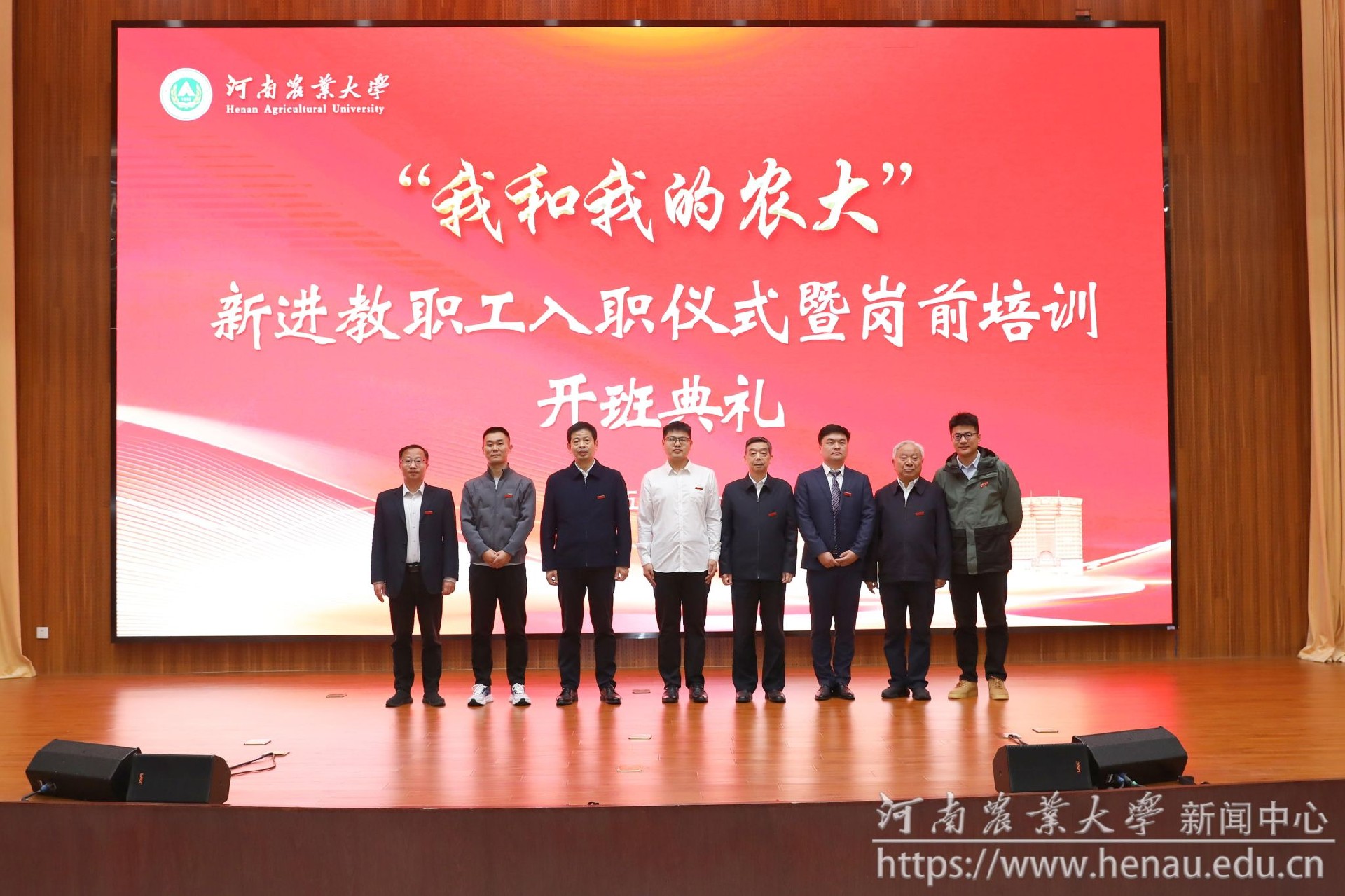 为践行学校“百名英才汇农大”求才引才大行动安排部署,增强新进教职工的荣誉感、归属感和使命感,10月10日,河南农业大学举行“我和我的农大”新进教职工入职仪式暨岗前培训开班典礼。校党委副书记、工会主席邹松涛,副校长赵鹏、马菲出席典礼。全国优秀共产党员、教书育人楷模、小麦专家郭天财教授受邀出席典礼。相关职能部门、各基层党委(党总支)负责人,以及2024年10月以来新入职的90余名教职工参加活动。典礼由副校长马菲主持。