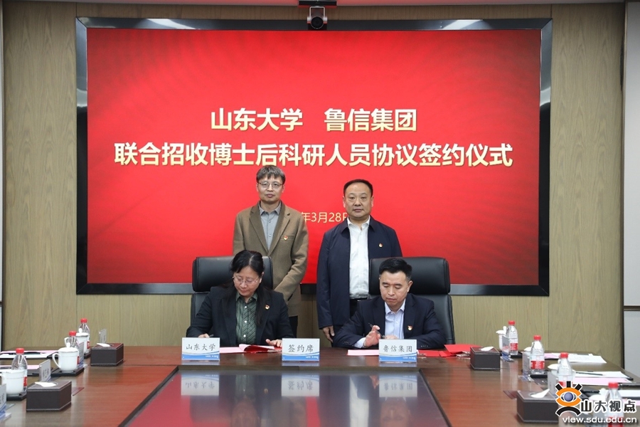 3月28日下午,山东大学与鲁信集团党建联建暨联合培养博士后科研人员签约仪式在鲁信集团办公大楼举行。山东大学人事部部长、人才工作办公室主任刘健,鲁信集团党委副书记、董事范宗杰出席仪式。