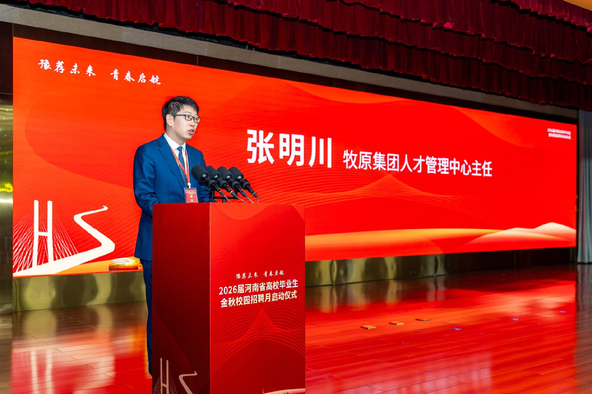 牧原集团人才管理中心主任张明川作为用人单位代表发言;学校材料科学与工程学院董清妍同学作为2026届毕业生代表发言。