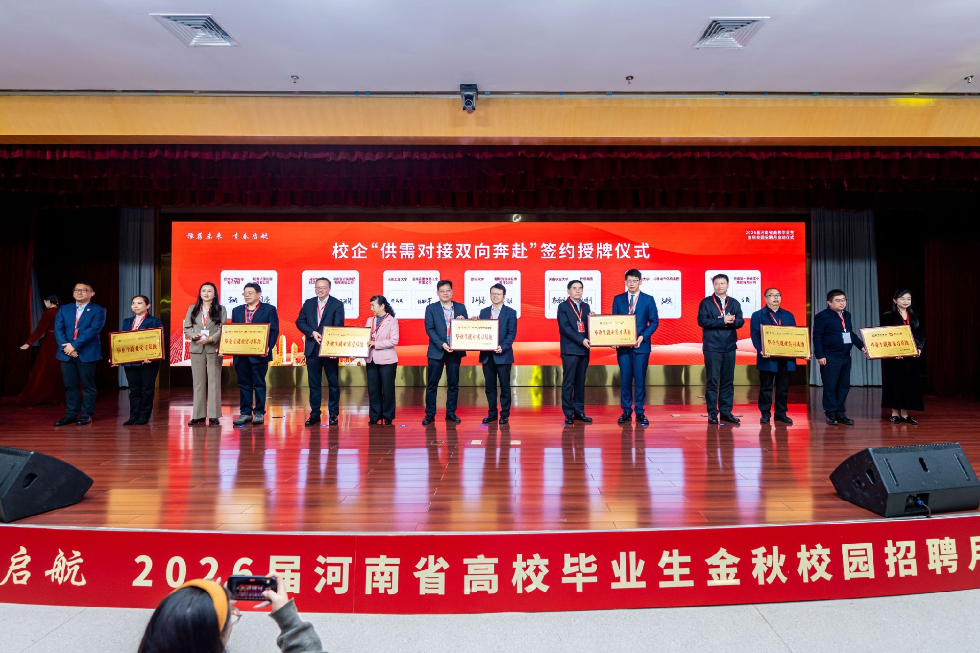 启动仪式上,郑州大学等7所高校与超聚变数字技术有限公司等7家企业签订“校企供需对接”合作协议,颁发“毕业生就业实习基地”牌匾。与会领导共同启动 2026 届河南省高校毕业生金秋校园招聘月,并发布《2026届河南省普通高校毕业生生源信息汇编》《河南省大学生就业创业服务指南》、河南省高校毕业生就业市场及全省高校校园招聘活动计划。