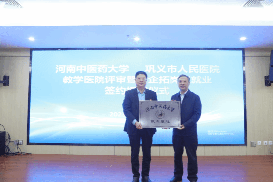 考察期间,校院双方签署了《河南中医药大学毕业生就业基地协议书》,并举行了“河南中医药大学就业基地”授牌仪式。(图/文 张玉敏)