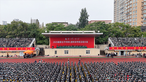 9月26日,郑州轻工业大学2025级新生开学典礼暨军训考核总结大会在东风校区隆重举行。校领导张志坚、魏世忠、杨新宇、王延峰、张成、周立明、顾兴良、王继威以及承训部队首长出席。相关部门和各学院负责同志、全体新生辅导员、教师代表、校友代表、承训部队教官参加大会并观看新生军训成果汇报。大会由校党委副书记杨新宇主持。