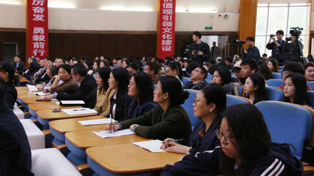 10月15日上午,《红旗渠之相逢盛世》红色精神育人研讨会在郑州工程技术学院英才校区黄河会堂隆重举办。原中共中央党史研究室宣传教育局副局长薛庆超,华北水利水电大学原党委书记、黄河文化研究会会长朱海风,河南日报社党委委员、副总编辑李铮,郑州市文化广电和旅游局党组成员、一级调研员王道远;河南大学新闻与传播学院副院长高红波,国家一级导演、一级摄影师刘澍,郑州市文化广电和旅游局网络视听处处长许华波,郑州工程技术学院校长白仲虎,党委副书记、工会主席焦红波,副校长张建伟、谭笑风,传媒学院领导班子,马克思主义学院领导班子,思政课教师,学生工作教师,共青团干部及师生代表300余人现场参会。