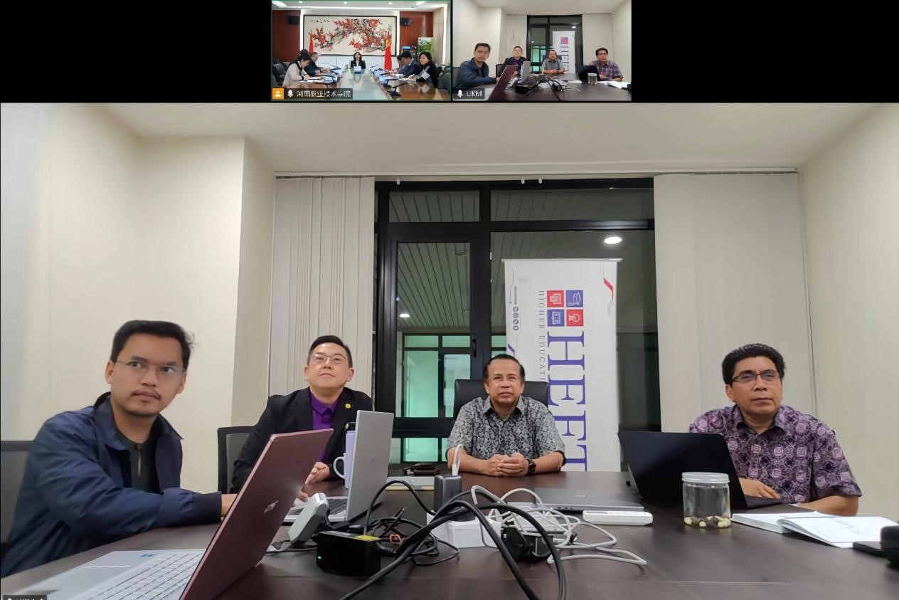 10月24日上午,河南职业技术学院与马来西亚国民大学以线上形式召开国际工程学院2025年度联合管理委员会会议。管委会主任、校党委副书记、校长夏新颜出席并致辞,校党委副书记、工会主席田华及国际合作交流处、国际教育学院等相关负责同志参会。马来西亚国民大学国际教育部主任穆罕穆德・侯赛因、信息科学与技术学院院长努尔希扎姆・萨菲、工程与建筑环境学院副院长舒海达・哈伦等专家委员出席会议。会议由校党委委员、副校长鲁冬主持。