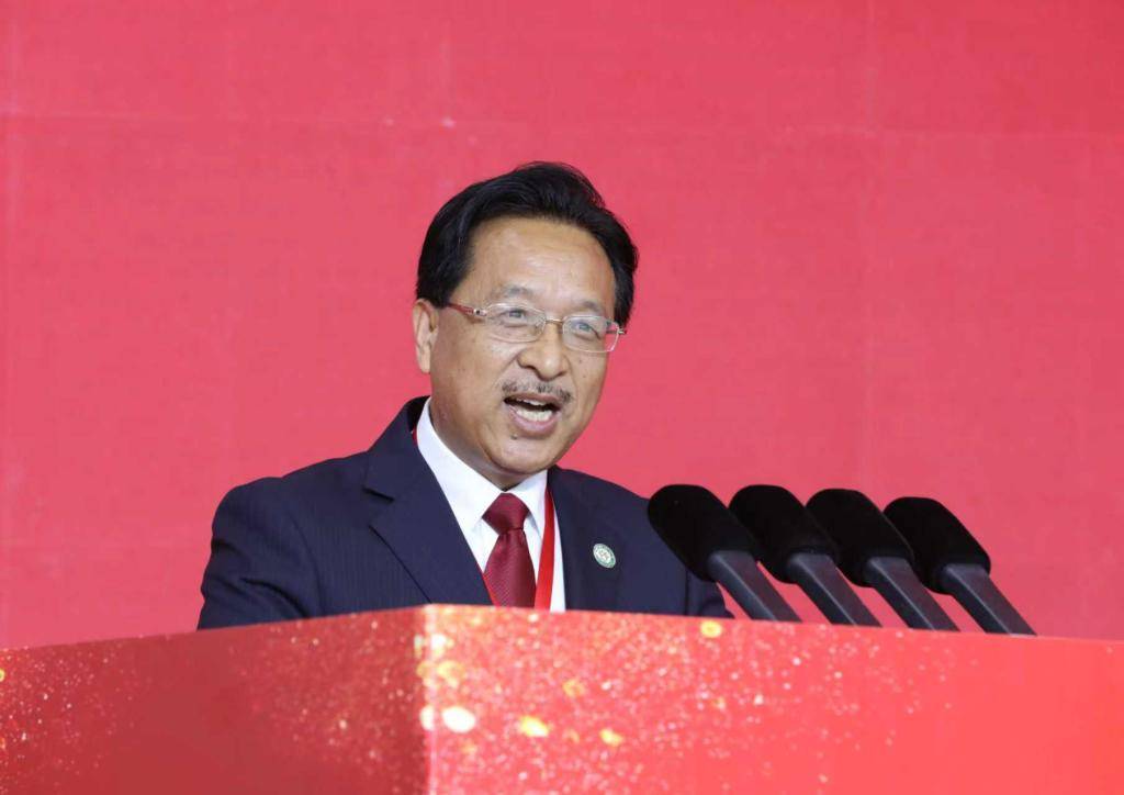 上午10时,大会在雄壮的国歌声中拉开帷幕,现场气氛热烈而庄重。