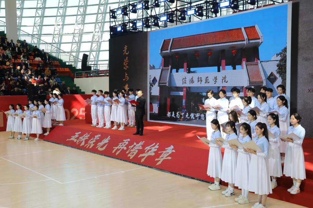 五秩春秋铸辉煌,弦歌不辍续华章。10月28日,校园内彩旗飘扬,宾客盈门、高朋满座,信阳师范大学建校50周年高质量发展大会在体育馆隆重举行。学校师生员工、校友和关心支持学校发展的各界人士欢聚一堂,共庆五十华诞,共襄发展盛举,共谋发展蓝图。
