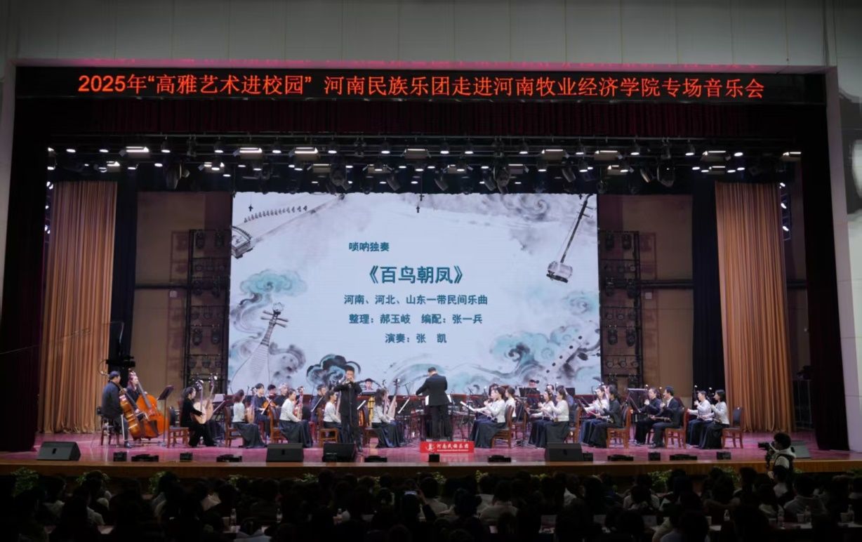 2025年“高雅艺术进校园”活动由河南省教育厅、河南省文化和旅游厅、河南省财政厅主办。河南民乐团的到校演出不仅为学生搭建了亲近艺术、聆听经典的平台,更将美育浸润于校园生活,为校园文化注入了鲜活的艺术活力。演出中,同学们在指挥的带动下热情互动,演出结束,经久不息的掌声表达了同学们对高雅艺术的认同。观看现场直播的同学们也纷纷表示:这是大学新生活,带给他们的美好华章。