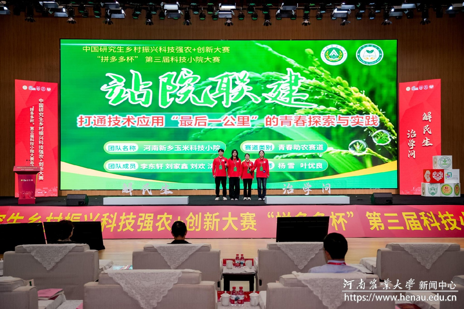 12月27日至28日,中国研究生乡村振兴科技强农+创新大赛“拼多多杯”第三届科技小院大赛全国赛在海南三亚举办。河南农业大学新乡玉米科技小院团队凭借扎实的科研实践与创新的技术服务模式,从全国247支参赛队伍中脱颖而出,获得大赛全国总冠军。