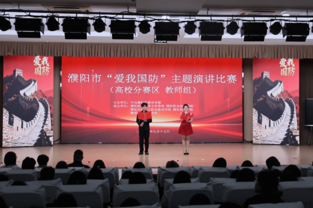 举办濮阳市“爱我国防”主题演讲比赛(高校分赛区),来自全市5所院校的11名教师选手和16名学生选手参加决赛。