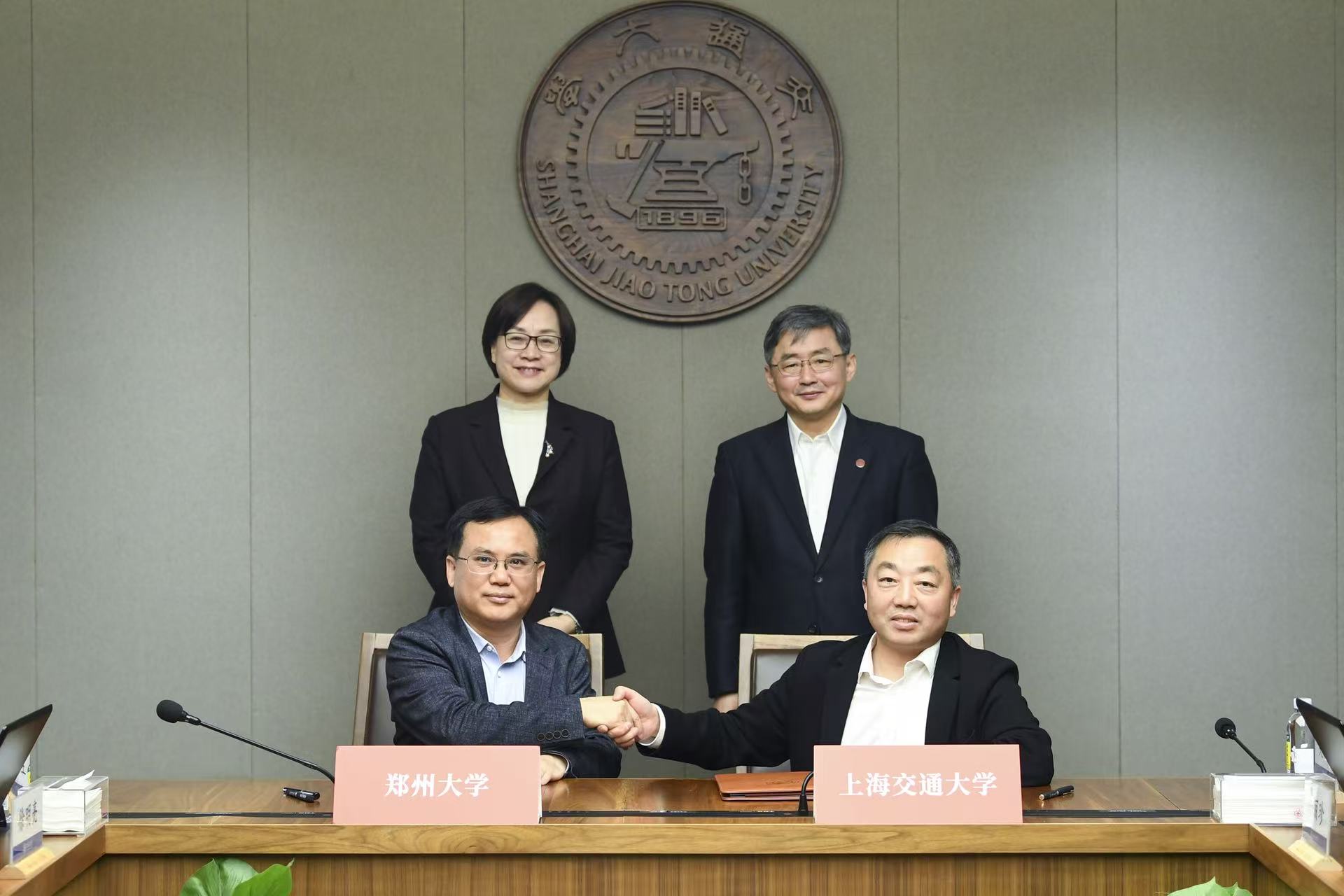李蓬对上海交通大学即将迎来建校130周年华诞表示祝贺。她指出,部省合建对口合作以来,郑州大学与上海交通大学并肩同行、密切合作,结下更为深厚友谊,结出更多合作硕果。她表示,当前,学校正在扎实落实全国两会精神,找准“国家所盼、河南所需、郑大必为”结合点,加快“双一流”建设。一是以“四个彰显”的价值使命推进“四大计划”,努力在国际学术前沿、服务国家战略、赋能区域创新发展、传承中华文明等方面产出更多标志性成果;二是瞄准“更交叉、更融合、更前沿、更未来”的方向,做实未来科学与技术研究院,建设教育科技人才一体化先行示范区,推动创新链与产业链深度融合;三是扎实落实立德树人根本任务,以入选教育部综合改革试点高校为契机,践行“让每个学生更优秀”育人理念,以人才培养模式改革为抓手,探索大规模因材施教的“郑大模式”;四是加快构建以AI全面赋能为特征的更加现代化治理体系,实施“人工智能+”三年行动计划,进一步提升治理能力和治理水平。她表示,双方续签协议,将开启合作新征程,把两校的发展更紧密地与国家的需求、时代的进步联系在一起。希望双方在多个领域深化合作,推动重大科研平台协同创新,共同提升人才培养质量,加速更多科技成果转化落地,携手在服务国家战略和区域高质量发展中书写新的辉煌篇章。