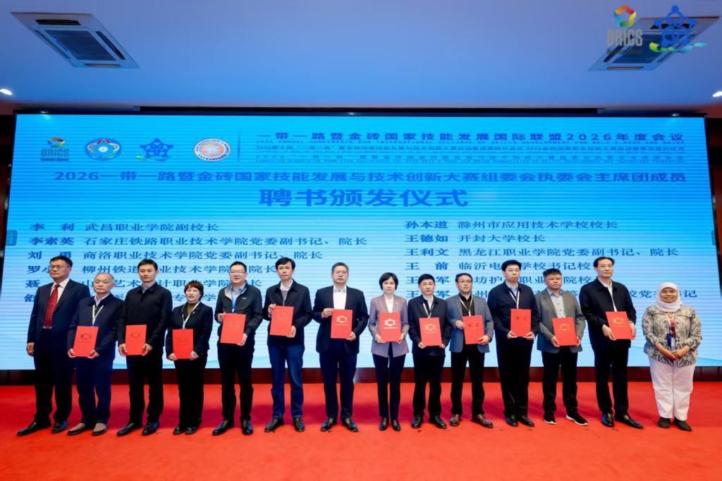 论坛同期举办了“一带一路”暨金砖国家技能发展国际联盟2026年度会议,发布了21项金砖团体标准。职教出海展担当,赋能创新启新程。未来,校将继续以标准为引领、以技能为纽带,深化职教出海实践,拓展国际合作版图,为构建人类命运共同体贡献职教力量。