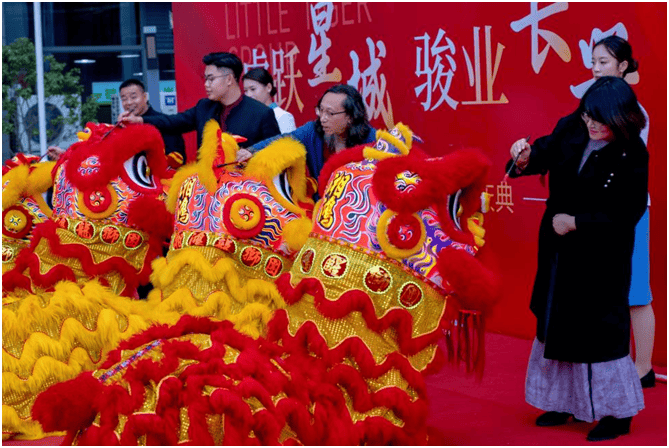 锣鼓铿锵,瑞狮腾跃。小老虎集团董事长陈虎、首席战略官任锌沐、天使投资人兼泌萌生物科技创始人贺翔、天使投资人兼老账房集团董事长刘晓梅手持朱砂笔,为雄狮点睛。“左点金、右点银,中间一点启乾坤”,一点一落,礼炮齐鸣,象征小老虎集团 “点睛” 数字经济新赛道,也点亮了十万高校青年的创业就业新图景。