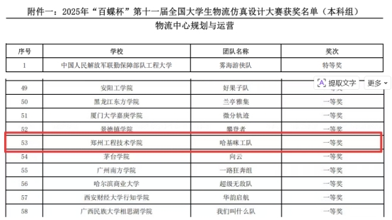 两项佳绩的取得充分体现了郑州工程技术学院商学院学子优秀的专业素养、创新能力和团队精神,也是学院持续深化“以赛促教、以赛促学、以赛促创”育人机制的重要成果。未来,商学院将继续推动实践教学与学科竞赛深度融合,强化数字经济与物流管理等领域的教学资源建设,不断提升学生的综合竞争力,为培养适应数字时代发展的高素质人才贡献力量。