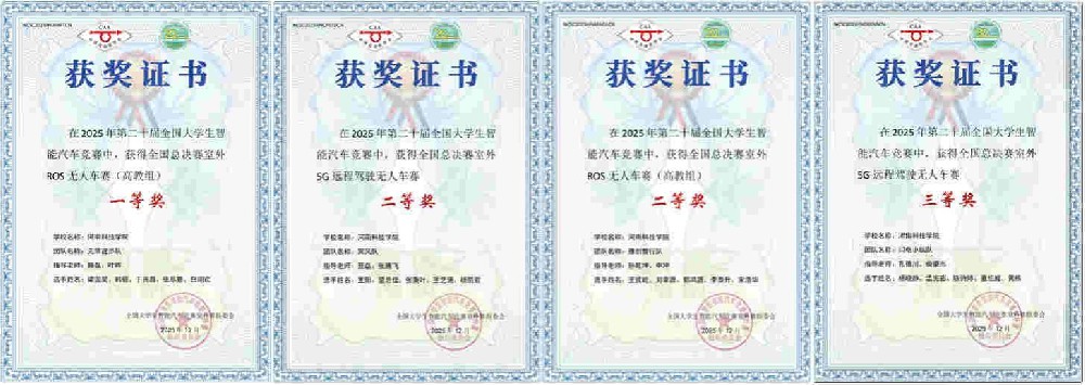 近日,由中国自动化学会主办、山东工程职业技术大学承办的第二十届全国大学生智能汽车竞赛室外赛全国总决赛圆满落幕。河南科技学院学子在人工智能专业老师的悉心指导下,凭借扎实的专业功底、出色的技术创新能力与默契的团队协作,在全国及北部赛区赛事(室外ROS无人车赛高教组/5G远程驾驶无人车赛)中表现优异,荣获国家级一等奖1项、二等奖2项、三等奖1项,北部赛区一等奖4项、二等奖1项、三等奖1项的好成绩。