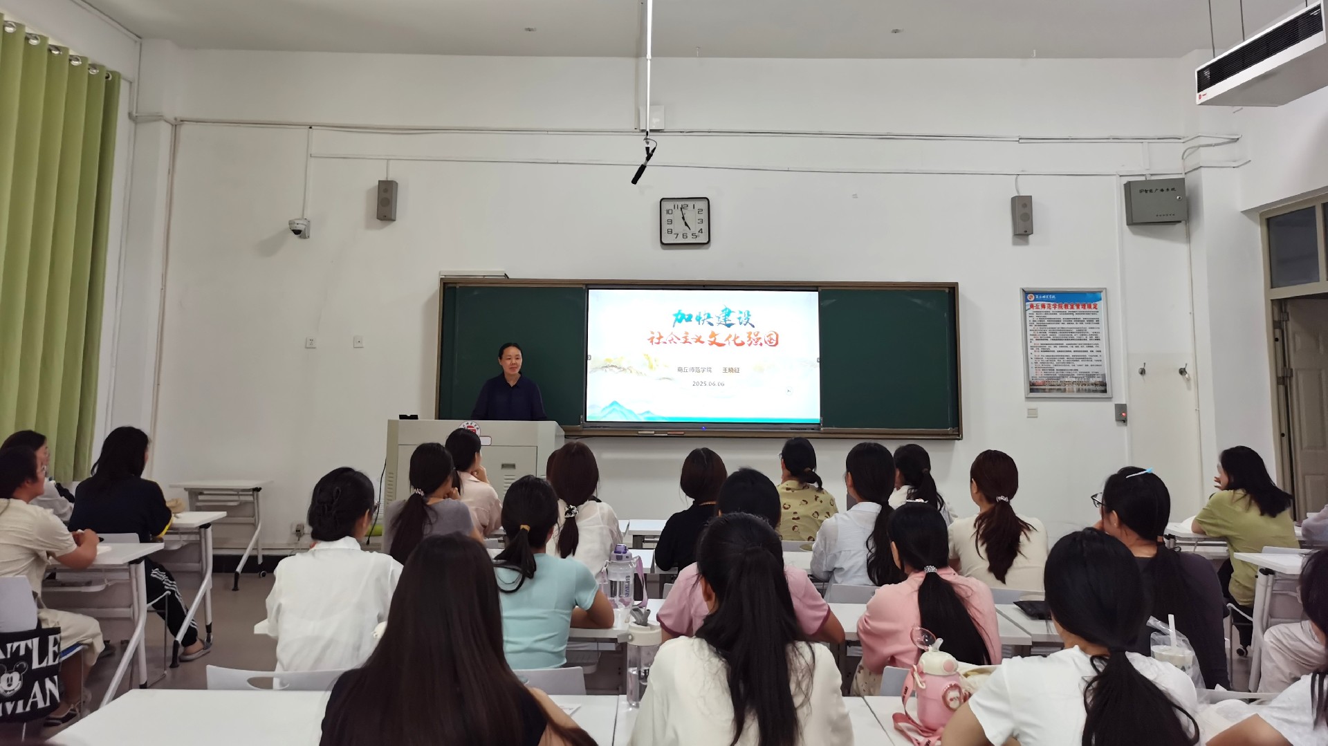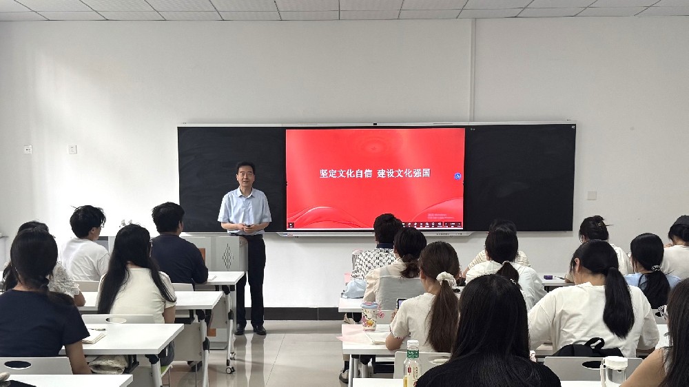 6月11日,校党委副书记、校长陈向炜在汉梁楼112教室为教师教育学院学生代表讲授题为《坚定文化自信 建设文化强国》的思政课。陈向炜从为什么建设中国特色社会主义文化、为什么要坚持马克思主义在意识形态领域指导地位的根本制度、为什么要用社会主义核心价值观凝心聚力、如何铸就社会主义文化新辉煌四个方面进行系统讲解,深入阐述了坚定文化自信、建设社会主义文化强国的重大意义与实践路径。他强调文化自信是一个国家、一个民族发展中最基本、最深沉、最持久的力量,文化兴国运兴,文化强民族强。青年作为国家的未来和民族的希望,要以高度的文化自觉,主动学习和传承中华文化。在坚定文化自信的同时,青年更要立足专业所长,勇做创新先锋,积极推动中华优秀传统文化创造性转化、创新性发展,为建设文化强国贡献青年力量。